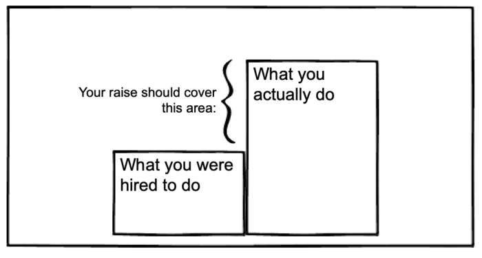 In this step you need to demonstrate your current value, based on your past achievements. You also need to show how your current pay doesn’t match your current worth. In other words: what you were hired to do, versus what you’re actually doing. You’re getting paid based on what you were hired to do, NOT what you’re doing now.