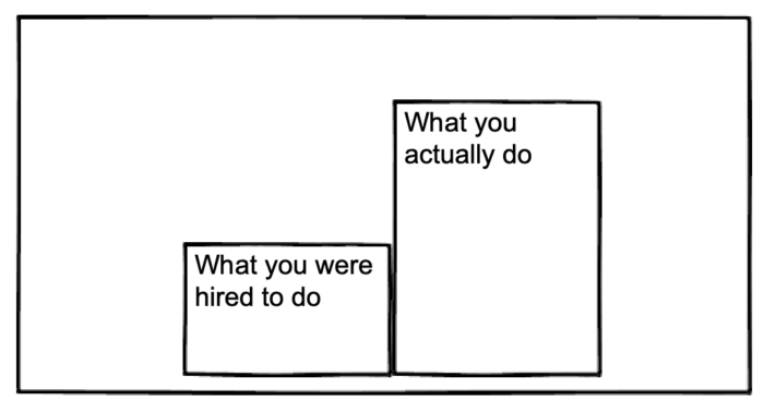 In step 1 you talked about what you were hired to do; now, in step 2, you play up all the other stuff you’ve done. Like so: